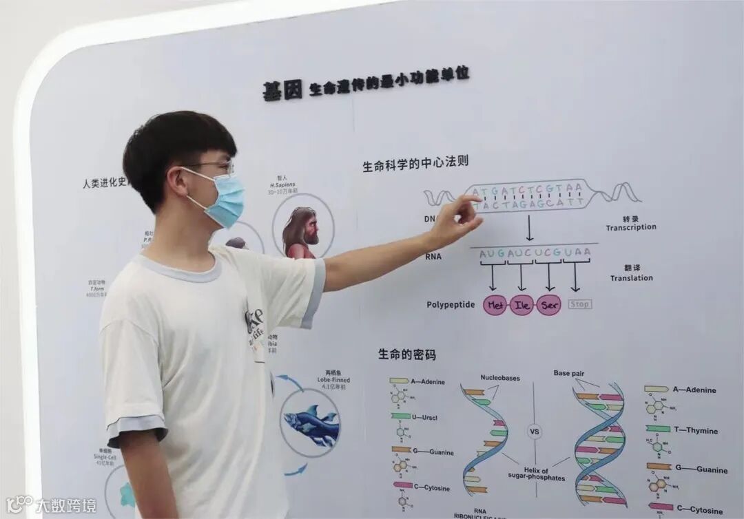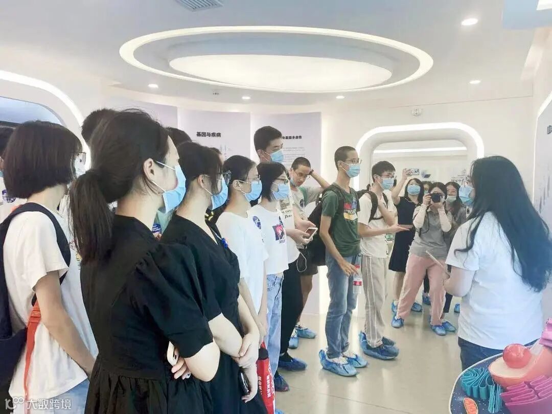 参观过程中,瑞因生物科普教育基地讲解员为学员们介绍了生命科学中心法则、精准基因检测、染色体遗传病对人体的影响及细胞与癌症关系等科普知识,普及了人类与流行病长期斗争的历史,学员们针对免疫细胞的临床研究效果及作用与讲解员展开了交流,并结合高中生物课程主动对基因科普板块提出自己的见解。