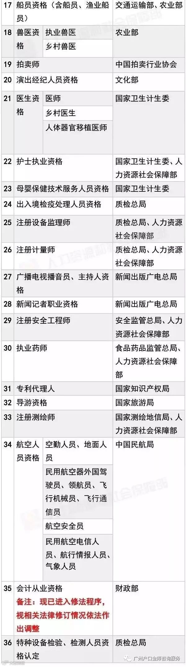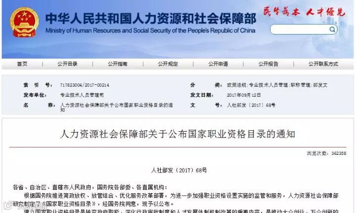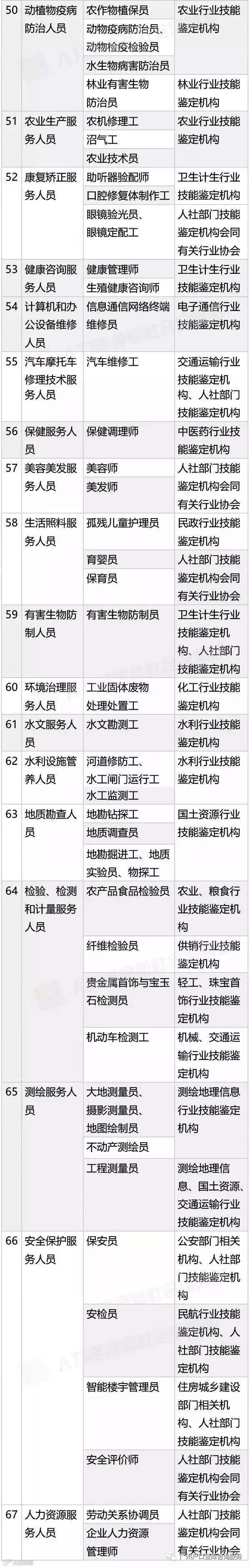 人社部公布了:140项国家职业资格目录!