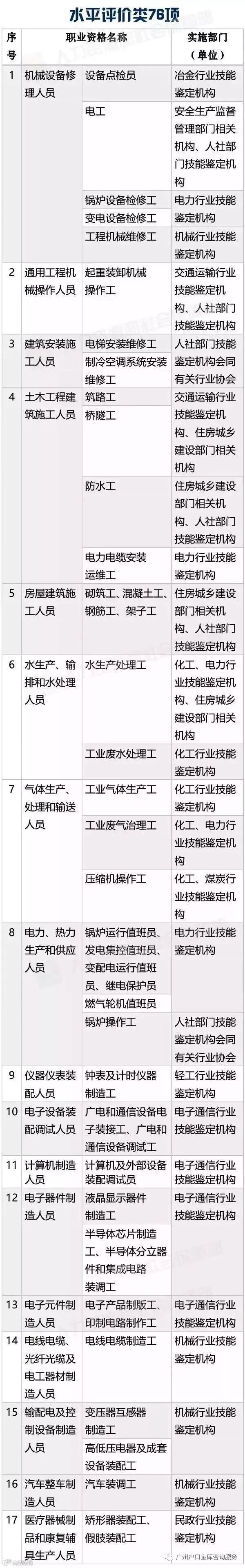 一些可用于广州入户的工种还在