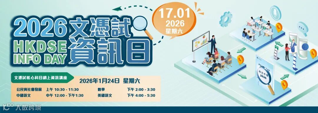 备战2026年DSE大考的考生和家长注意了!香港考评局将于2026年1月17日在考评局红磡办事处及考试中心举行2026文凭试资讯日,并于1月24日举行核心科目网上资讯讲座,让大家更加全面地了解DSE考试。