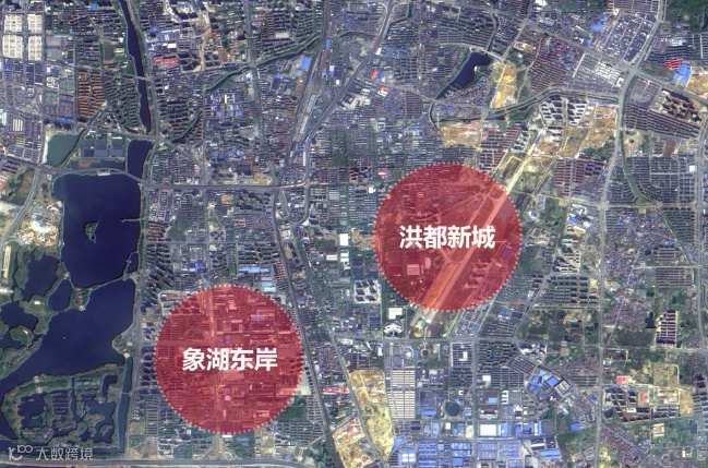 交通和土地给未来城市规模划定了一个框架,更重要的是区域以象湖为中心已经形成了“象湖IP”,西岸的华侨城片区成为南昌热点板块之一,而处于象湖沿线的东岸片区也紧贴这个热点。