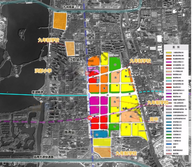 从片区控规看土地开发空间巨大,包括10宗住宅用地,9宗商住用地,4宗九年制学校用地,1宗高中用地,4宗商务用地,6宗商业用地等。从土地的分布看,学校用地占比很大,地铁口多为商业商务以及商住用地,相对于洪都新城来讲,其实该片区未来开发的节奏和压力来讲,处于相对良性的平衡关系。