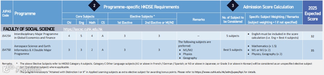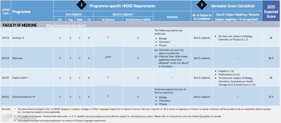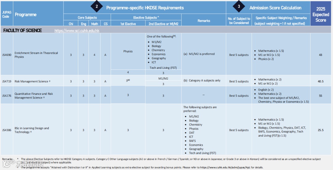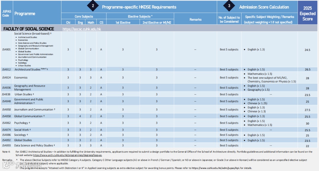 此外,还有一些专业(如医学、教育、语言类课程)对个别DSE科目有更高要求,例如英文、数学或科学相关科目要达到特定等级,这一点在分数表中并未详细列出,考生在评估时应特别关注官网入学条件。