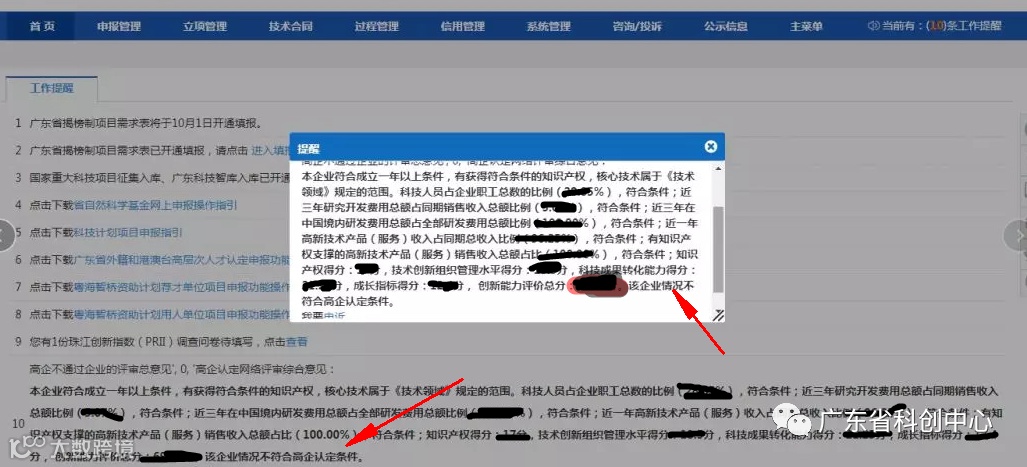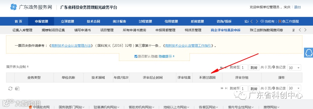 点击进入“申报管理-项目申请-高企评审结果及申诉”
