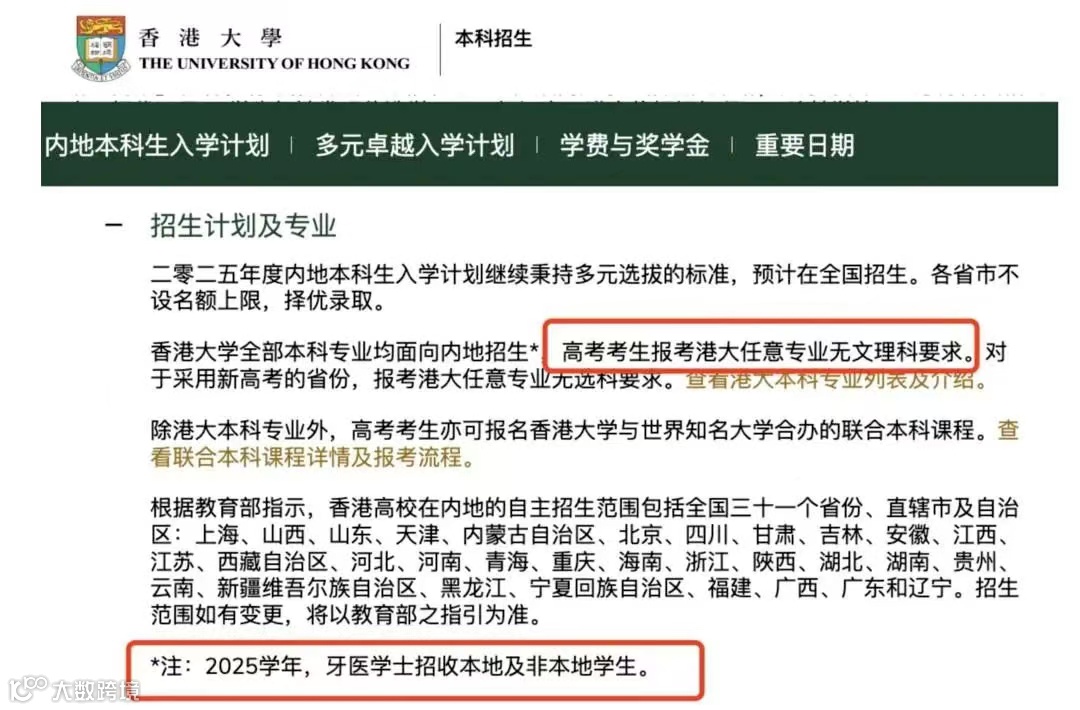不过,24年10月4日,2025年香港大学的内地本科招生开放报名通道,且没有选科要求。也就是说,无论有无港籍都可以申请该专业。
