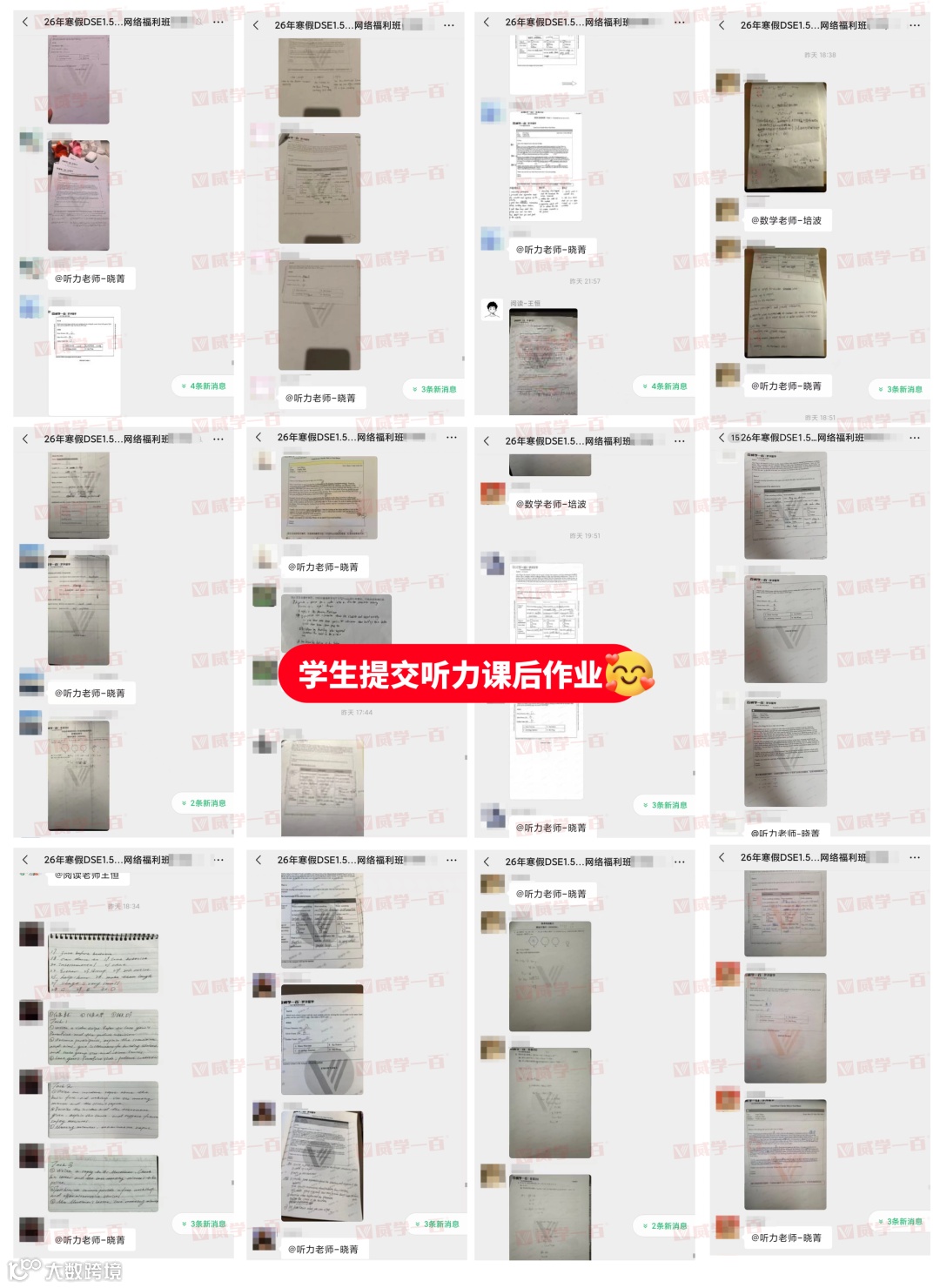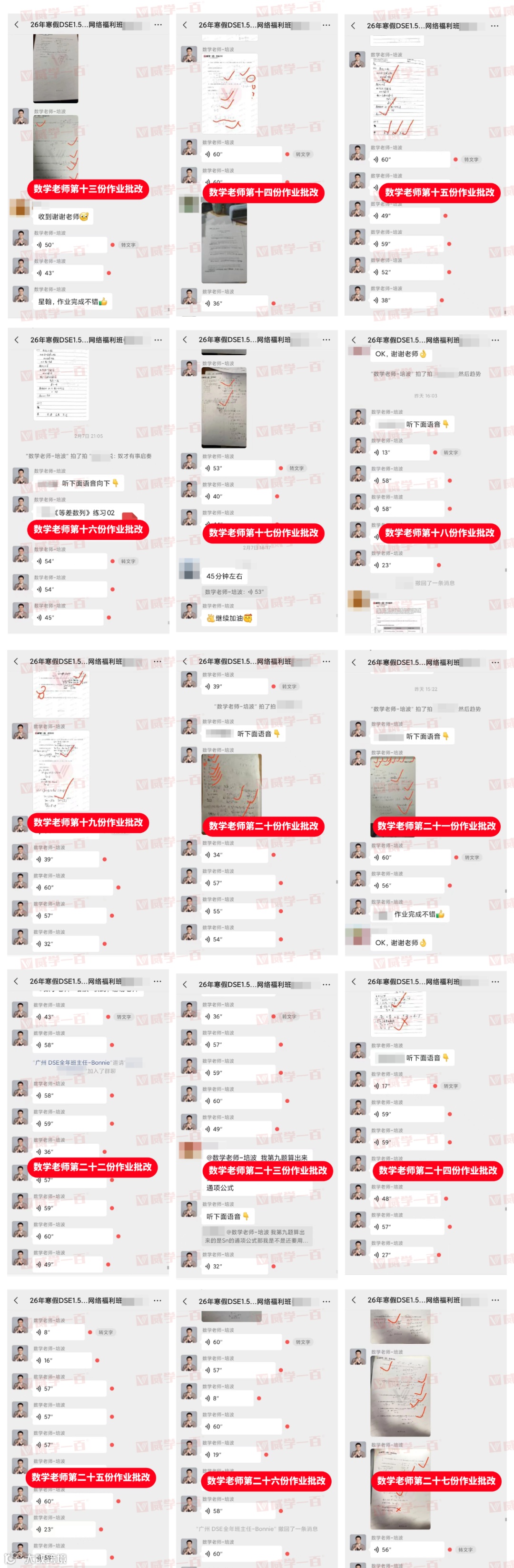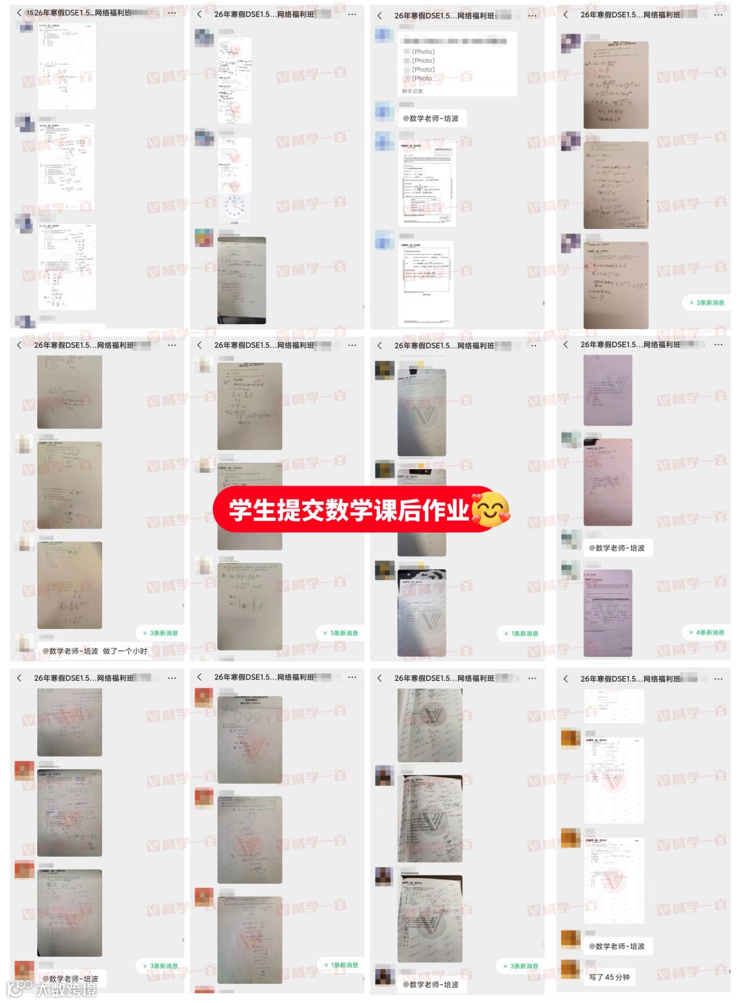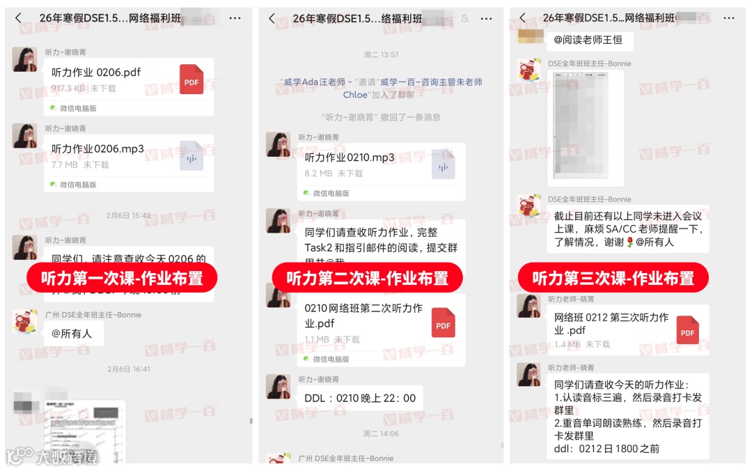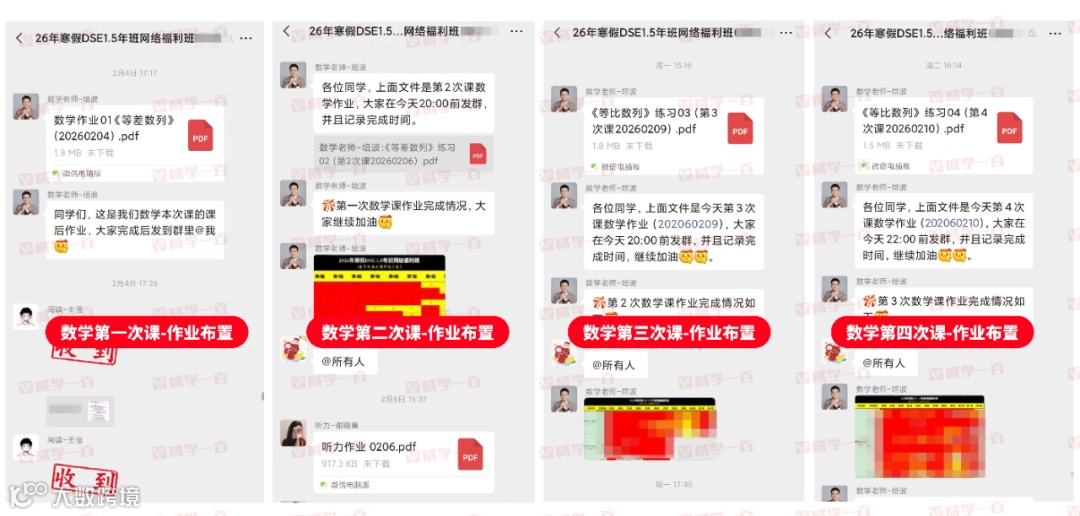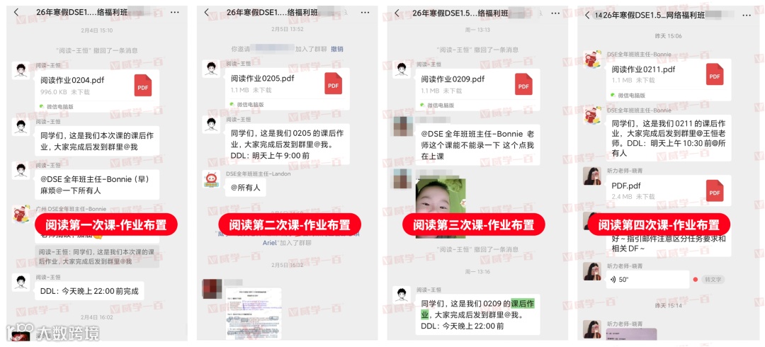 每堂课程结束后,各科老师都会第一时间在群内布置针对性课后作业,作业贴合当日课程重难点,精准匹配27年DSE考纲,既能帮助同学们查漏补缺,也能提前适应DSE1.5年班的学习节奏。同时,专属老师会同步发送作业提交提醒,明确提交截止时间,督促每一位学员按时完成。