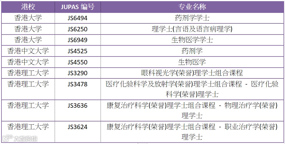 如果把医学相关的专业放进来,选择就有很多,以下举一些例子。考进去需要DSE成绩大概为每科平均5分以上的分数。