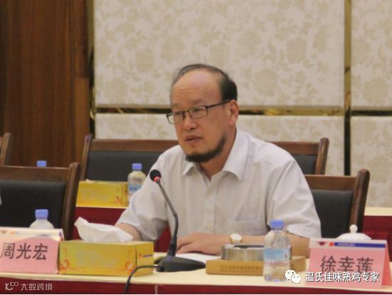 研讨会首先由温氏佳味公司吴焕总经理作《构建安全、优质、高效、标准的禽肉食材供应链》主题报告。报告中强调中餐标准化、消费需求升级是佳味公司面临的机遇和挑战,随着与南京农业大学产学研工作的深入合作,为传承国鸡传统饮食文化,引领中式主食的发展潮流,助力温氏股份产业链延伸和禽业转型升级奠定了基础。会上并对佳味公司上半年校企合作进展、下半年主要研发任务、合作需求、长期合作愿景、课题方向等方面内容作出了详尽报告。