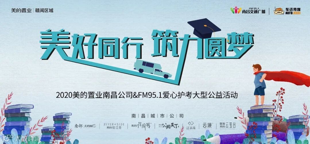 美的置业赣闽区域南昌城市公司作为公益商全程冠名本次活动,以积极参与社会公益的初心,和各部门形成合力,打好“爱心护考”决胜战,为青春之花绽放,提供最充足的后盾能量。