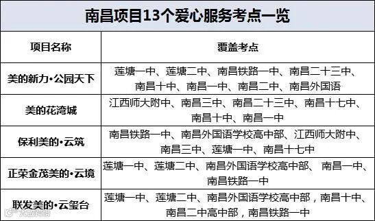 此外,美的置业赣闽区域南昌城市公司将派遣工作人员,与各职能部门一起驻场13个考点,为考生提供夏日清凉服务,布置家长等候休息区,并设有“爱心后备箱”准备充足用水及防暑药品,做好考生和家长们的后勤服务,一起赢战高考。