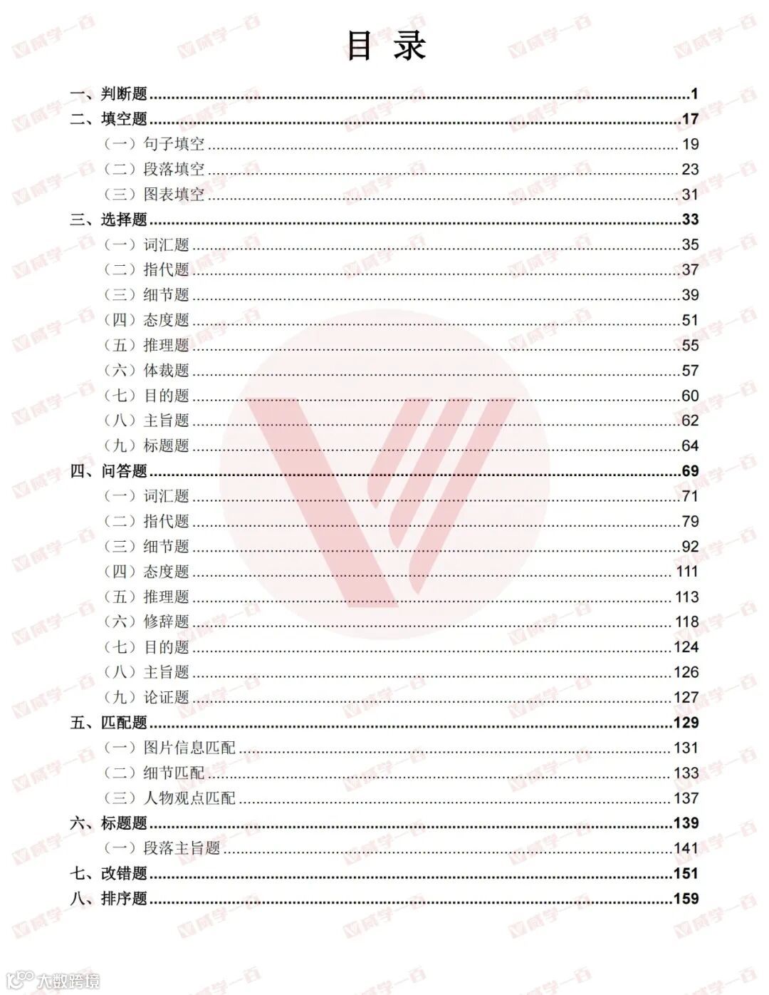 在备考初期,摸清学科题型、打牢知识根基是阅读的基础。该教材涵盖了DSE英语阅读常考的判断、选择、填空、问答等8种题型,与我们原创的英语阅读8大逻辑体系相结合,逐题型拆解答题逻辑与得分点,帮助考生全面掌握各题型答题思路、建立解题框架,精准定位得分点,提升不同题型的应对能力与正确率。