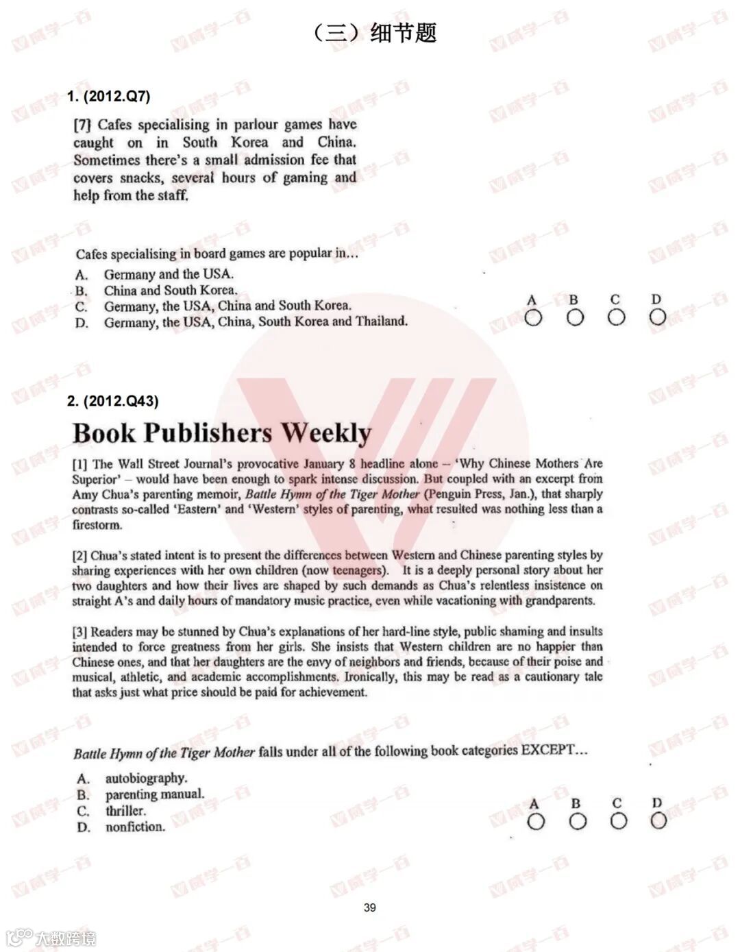 在学员掌握了各项阅读技能之后,将进入实战训练环节。该教辅选取DSE英语阅读2012-2024年真题,助力学员了解历年真题命题规律、熟悉考试题型风格。在真题练习中,学员既能熟悉真题节奏、掌握不同题型的时间分配能力,也能明确自身备考重点与不足。同时,老师会从题干分析到选项解读进行全流程精讲,拆解真题篇章的命题思路与考点,帮助考生吃透真题逻辑、补足知识漏洞,避免无效刷题。