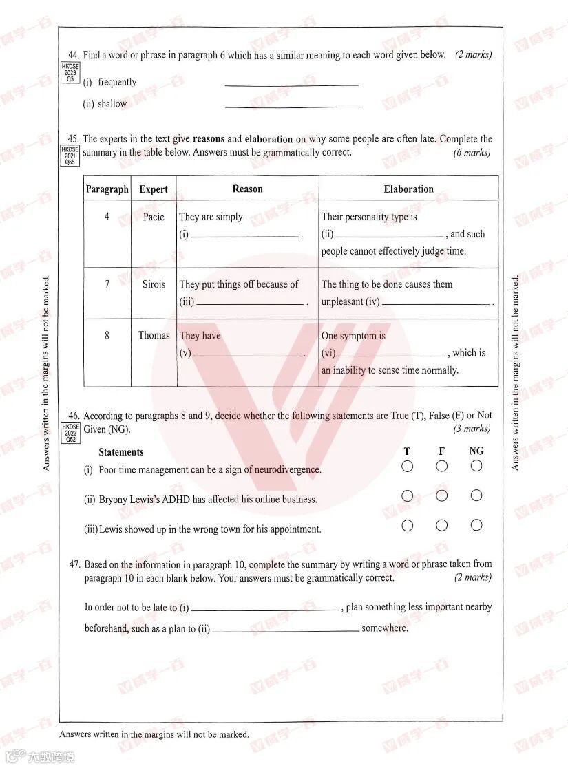 但阅读恰恰是许多考生的失分重灾区。DSE阅读不仅题材跨度大,涵盖社会现象、科学文化、人文历史等,涉及生涩难词,要求考生快速适配不同领域的专业表述与逻辑框架,对知识储备和文本解读能力提出双重考验。同时,考生还面临题量大、时间压力大的双重挑战,需在1.5小时内完成多篇文章阅读。不少考生因阅读速度不足、信息筛选效率低,直接导致大量题目失分,成为英语冲3分的最大阻碍。