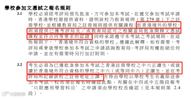 图:参加内地DSE考试的考生要求
