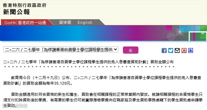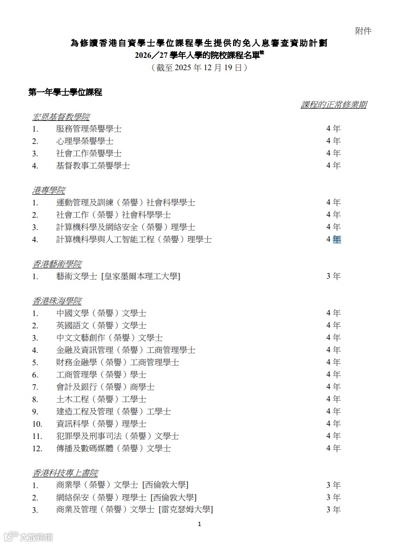 想申请香港自资学士课程的同学注意啦!香港教育局日前公布了2026/27学年免入息审查资助政策,资助金额维持每年35,120港元,覆盖15所合资格院校、上百门经本地评审课程,从新生到旧生、职专背景学子均能受益。