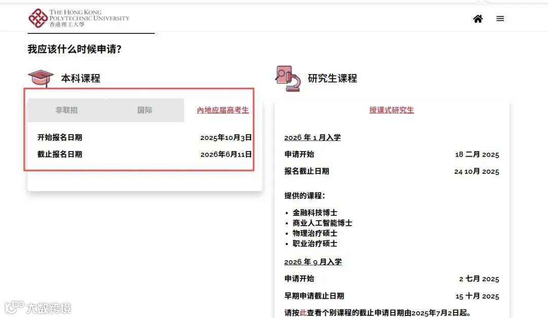 目前,港八大已陆续公布2026年本科生申请时间节点,不同院校的申请方式、截止日期差异明显,若错过关键时间,即便分数达标也可能错失机会。