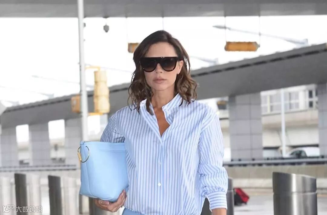 一片式墨镜下贝嫂的脸显得格外精致!
