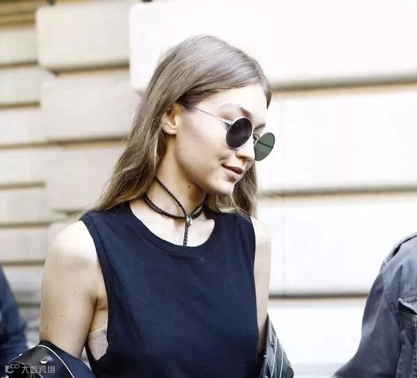 Gigi戴圆形墨镜气场十足。