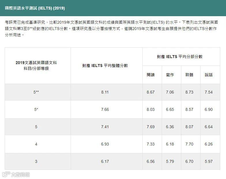 雅思能较客观反映DSE英语成绩