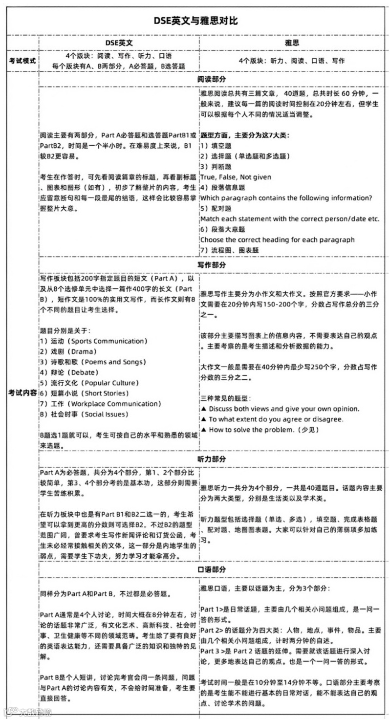 虽然DSE很多方面比雅思更深,但目前暂时还没有比雅思更接近DSE英语的考试。