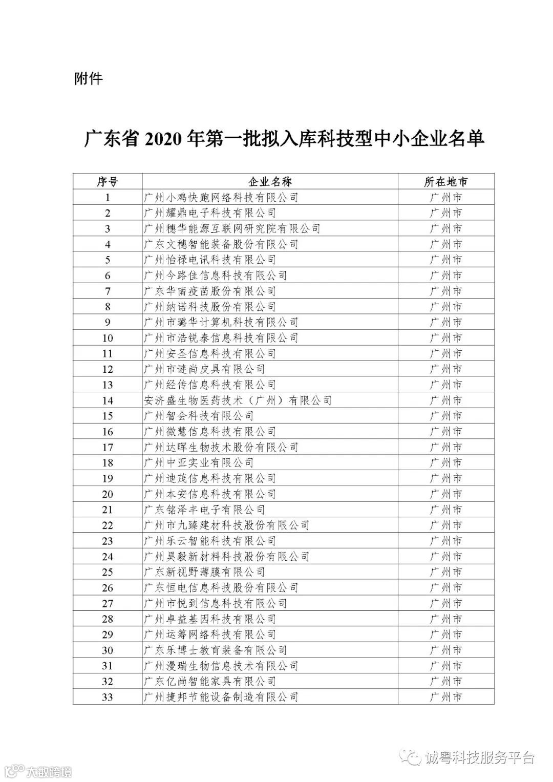 附 件:广东省2020年第一批拟入库科技型中小企业名单