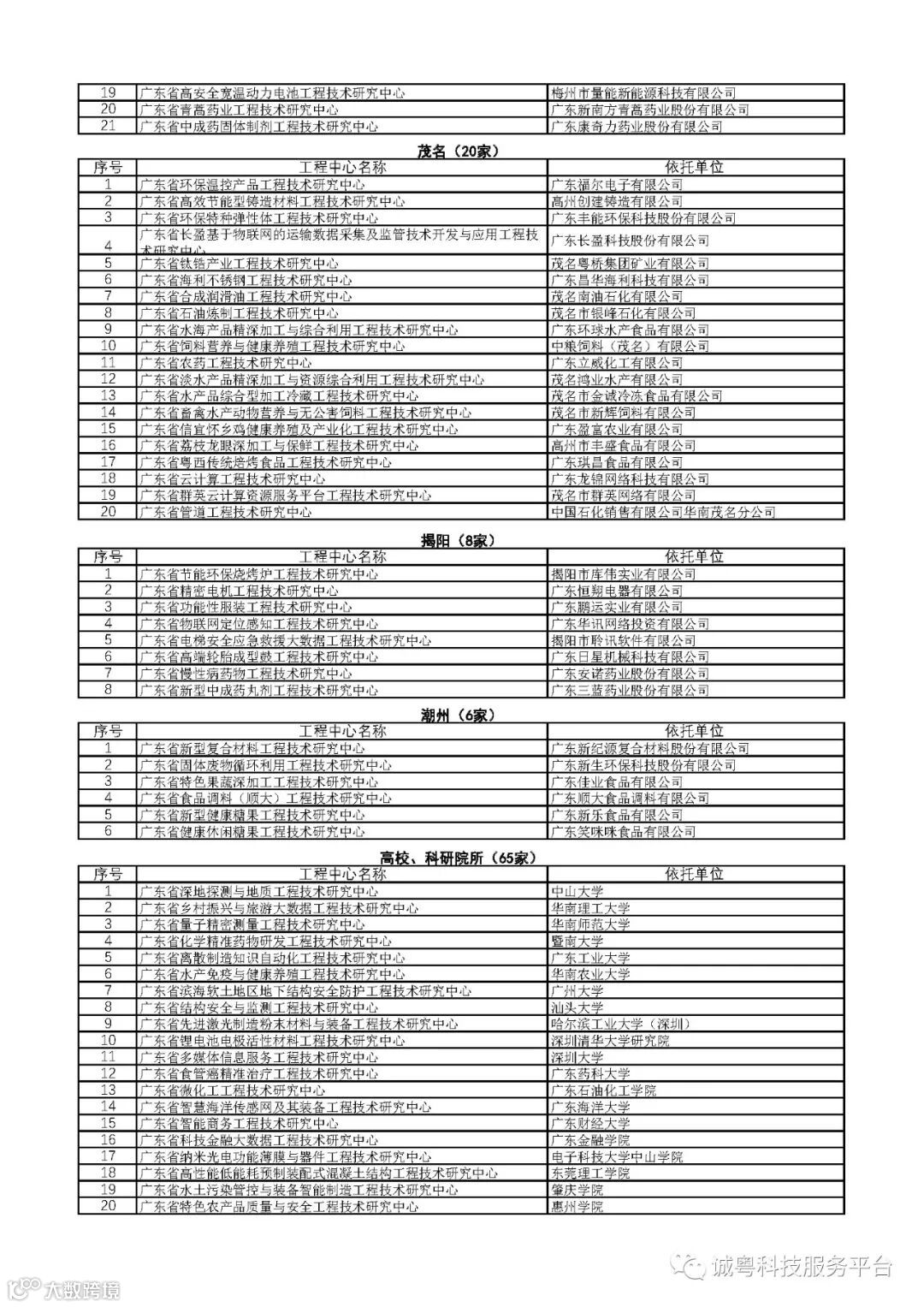 广东省科学技术厅关于2018年拟认定广东省工程技术研究中心名单