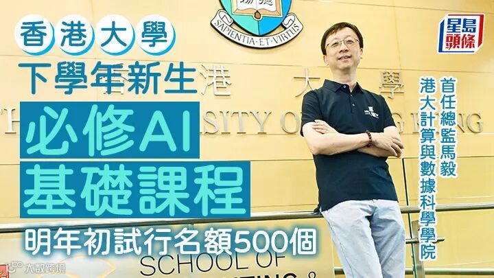 近期,香港大学计算与数据科学学院总监马毅接受星岛专访时表示,学院将推出「人工智能素养微证书」课程,下学期先试行课程,预计名额500个。