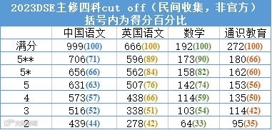DSE Cut Off 就是各个等级的最低DSE分数线,也就是最低要拿到卷面的百分之几的分数,才能达到对应的分数等级!
