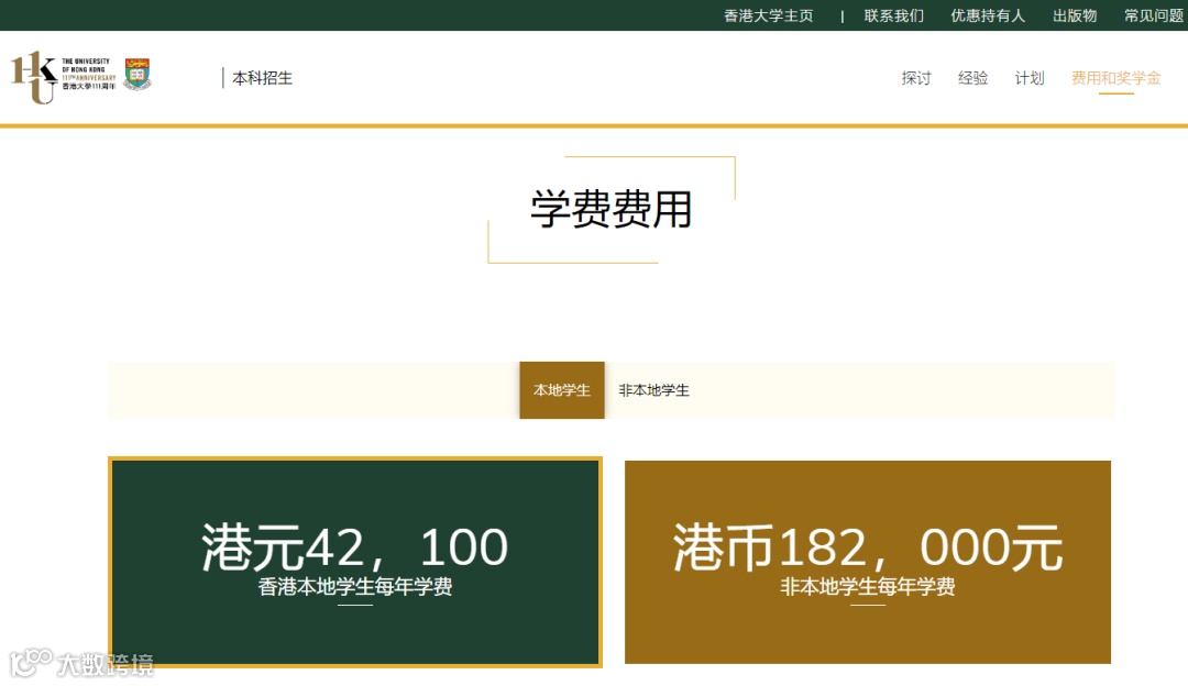 以香港大学普通商科类如管理学专业为例,非港籍生的学费是每年182,000港币,而港籍生的学费是每年42,100港币。
