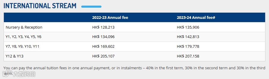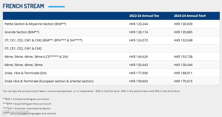 评估费:国际部为港币1000元;法国部港币500元