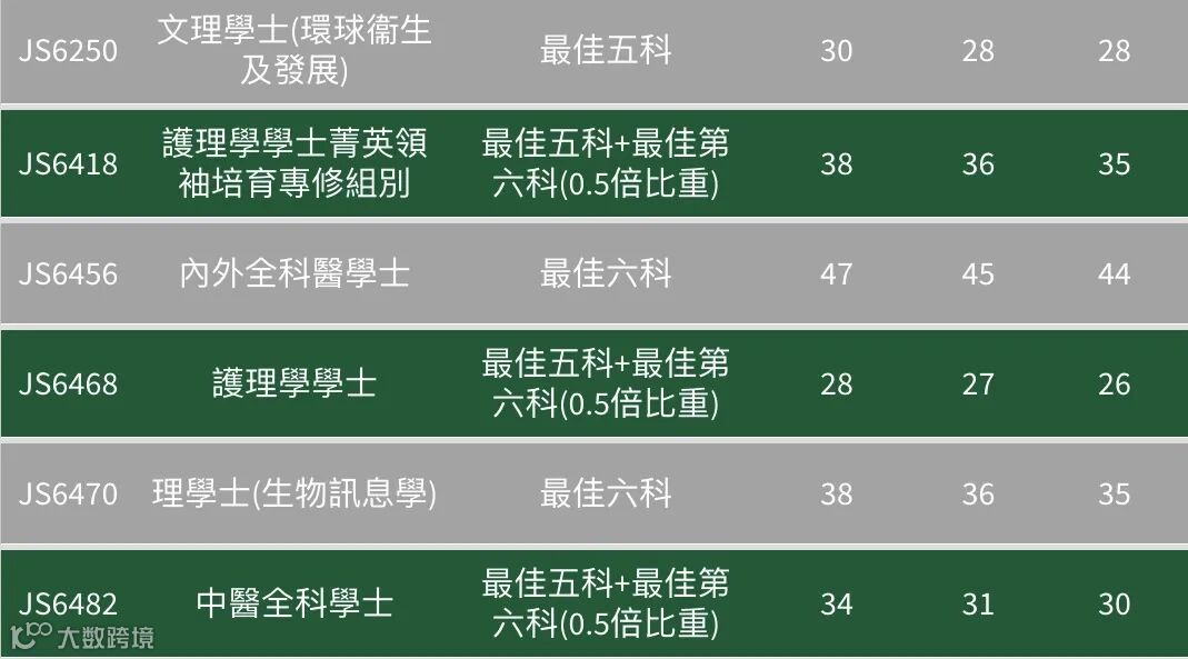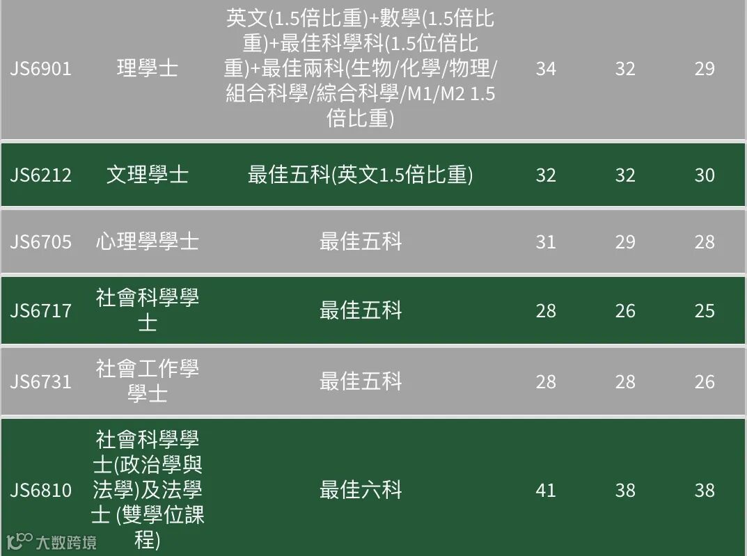 JS6901理学士计算比重(英数X1.5+最佳理科+其余最佳2科,而且理科选修X1.5)后是5科29分。JS6901理学士算英数+1科最佳科目+2科理科选修,大概是5科34455的水平。如果2科理科选修+数学554就大概考上。