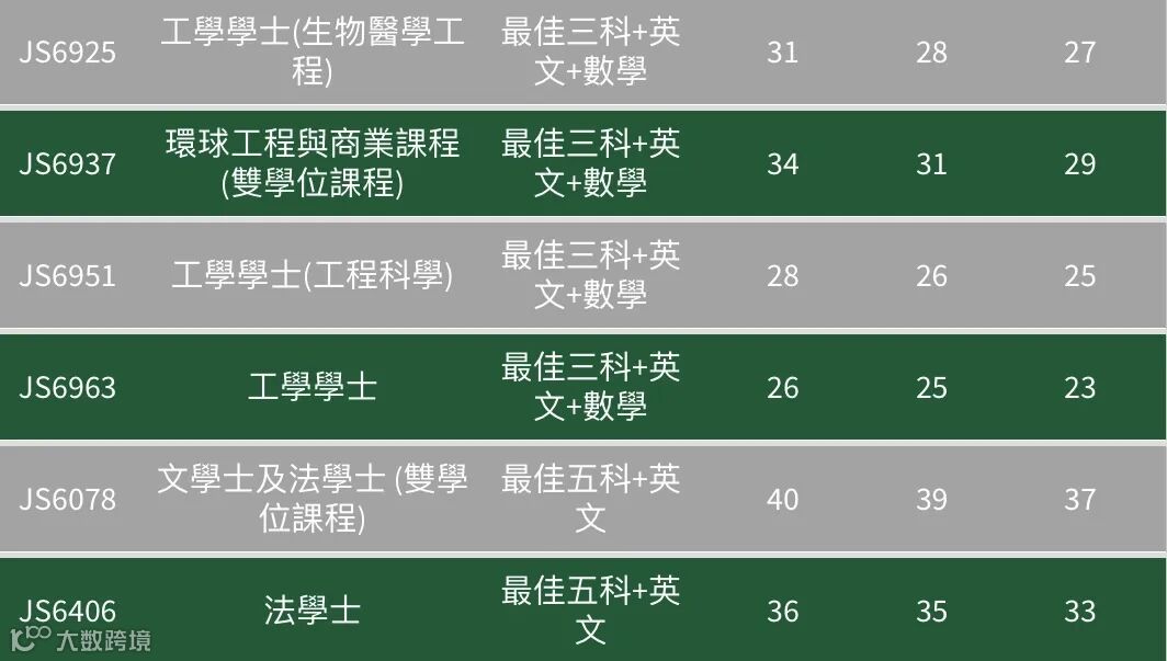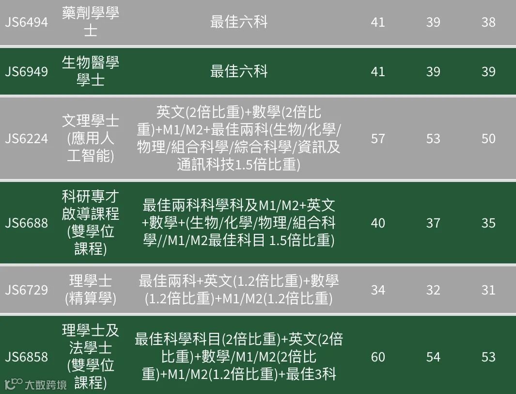 JS6963工程学士、JS6901理学士是全港大收生分数最低的大类专业。