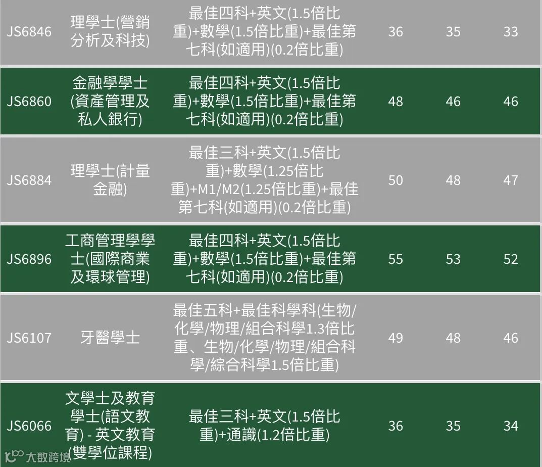 2、必需读第6科的专业,香港大学有16个专业计算最佳6科成绩。