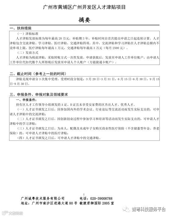 【人才政策】广州市黄埔区广州开发区人才津贴项目 诚粤科技服务平台
