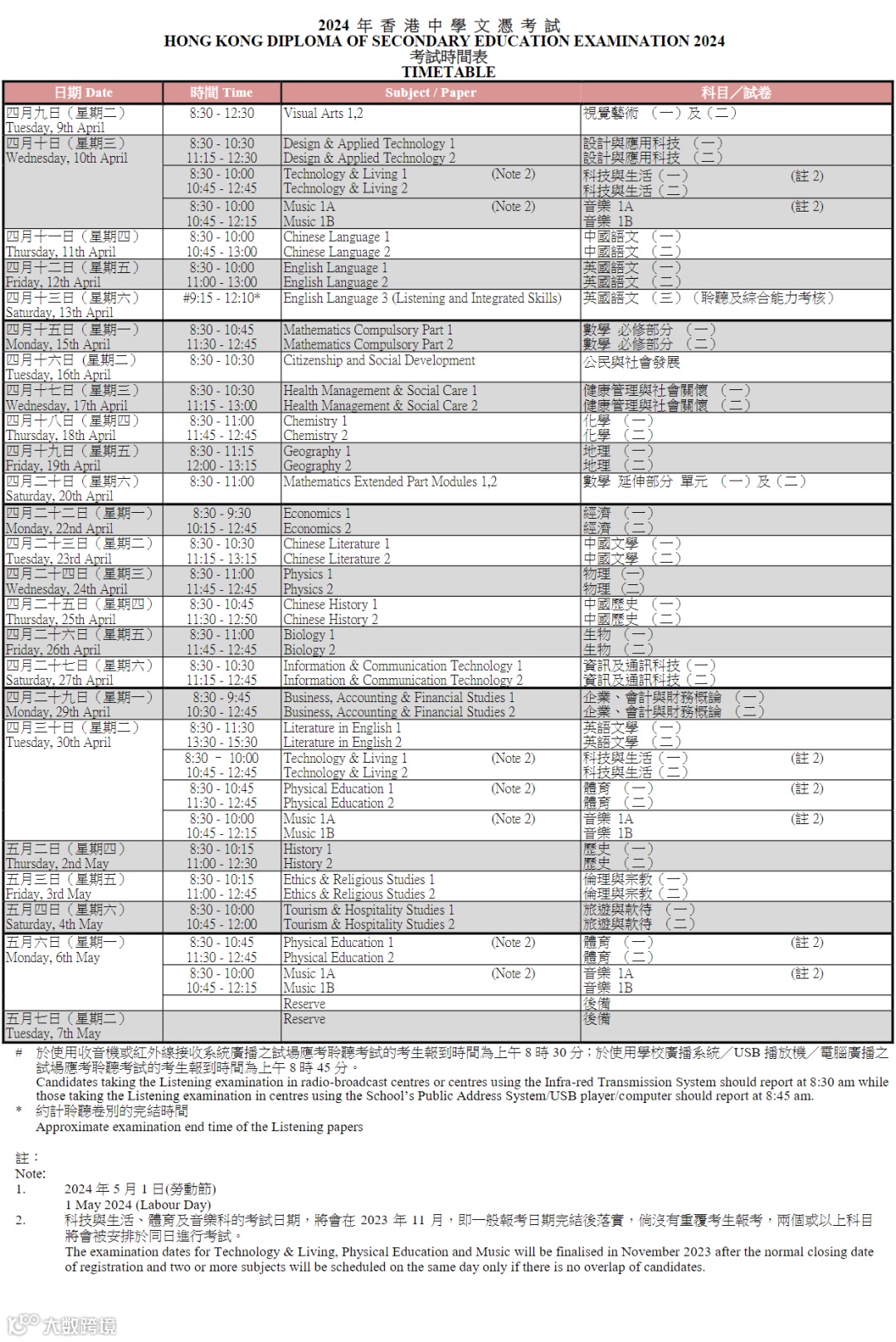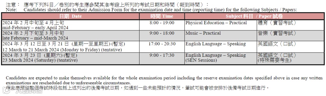 2024DSE考试时间表