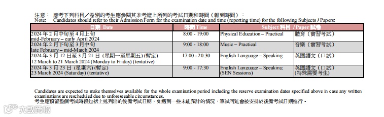 根据规定,所有学校考生须完成有关科目的校本评核,分数亦会计入其文凭试的成绩,大概占比20%。