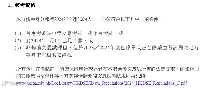 但凡符合下列条件中其中一项,都可以自修生身份参加2024年DSE考试。