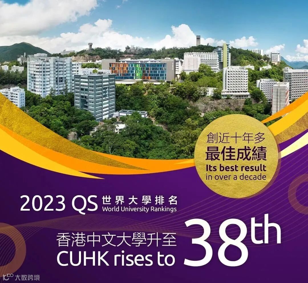 香港中文大学(港中大)于QS世界大学排名2023中位列全球第38位,比去年上升1位,创下港中大近十年多来最佳成绩。