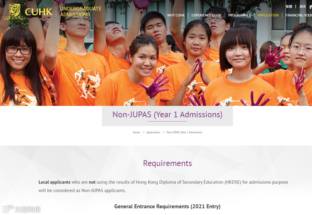 香港中文大学的非联招招生办法(Non-JUPAS)报名资料及网址(2020年年数据,仅供参考)