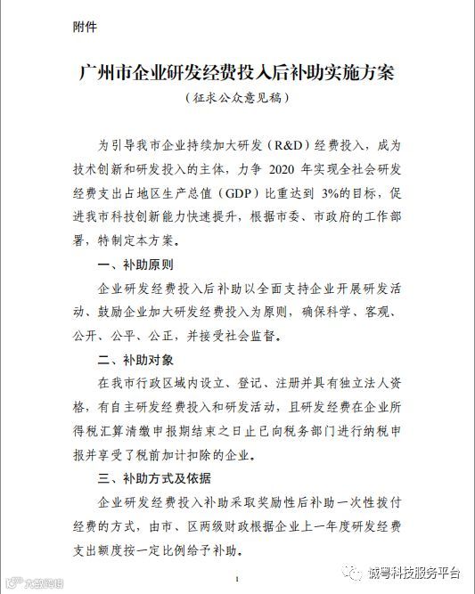 关于公开征求《广州市企业研发经费投入后补助实施方案(修订稿)》意见的通知
