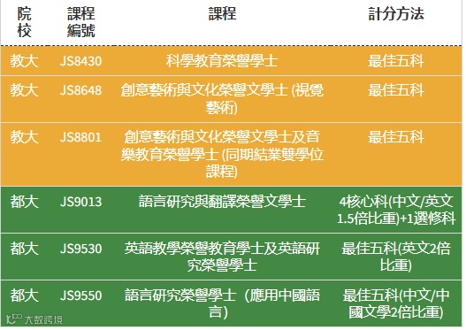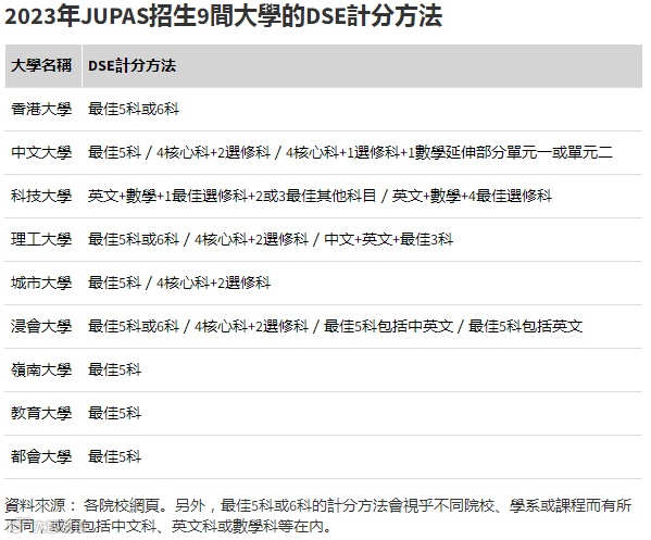 此外,乙类应用学习及丙类其他语言科目在不同院校的计分方法均有分别。例如物理系可能会对DSE物理科乘以1.5至2倍的权重!