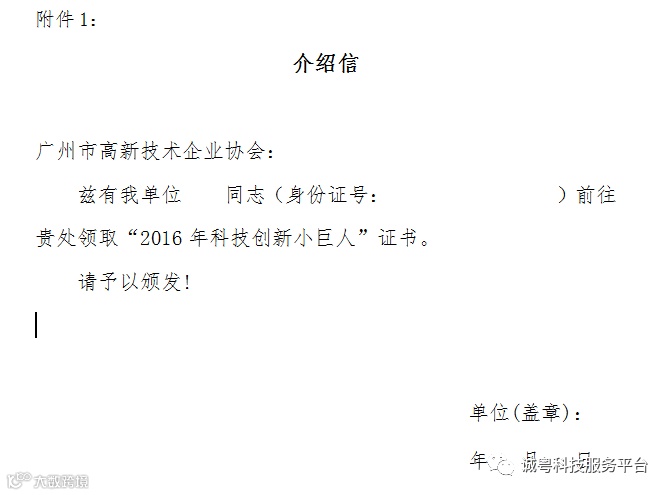 关于领取2016年广州科技创新小巨人企业证书的通知
