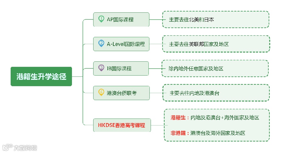 对于港籍生而言,无论是本地课程还是国际课程都可以报读,但每个课程体系最主要的升学方向重点不同,见下表:
