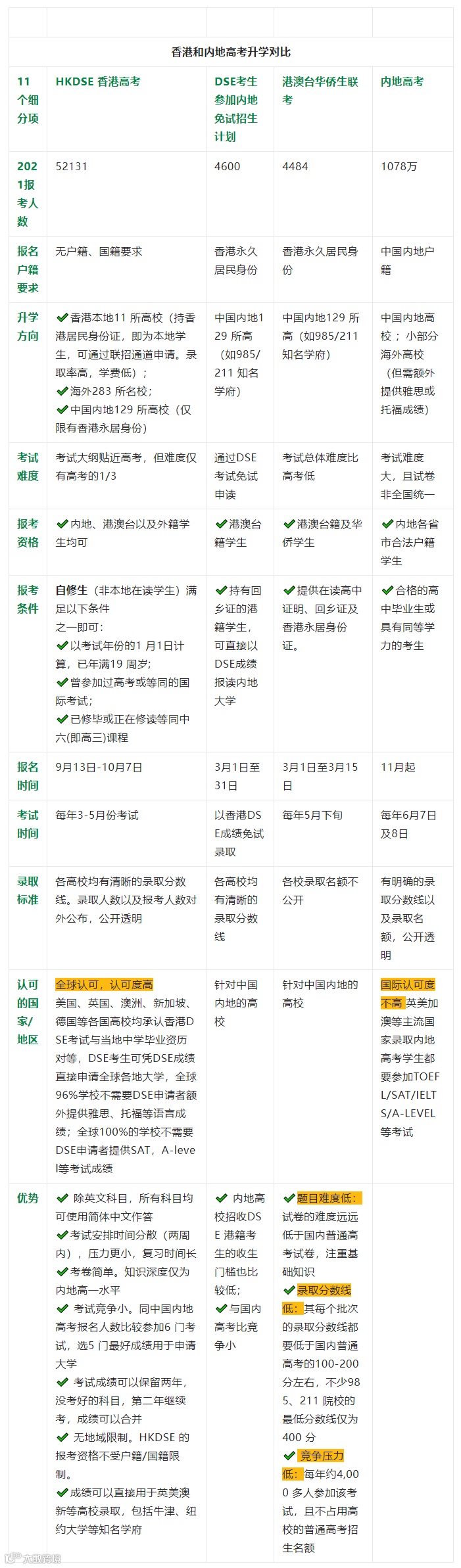 总体看,中国高考理科比香港DSE难度大,而香港DSE英文则比中国高考难。但是,没有在香港读书的内地生报考DSE考试难度,要比港籍生大的多!