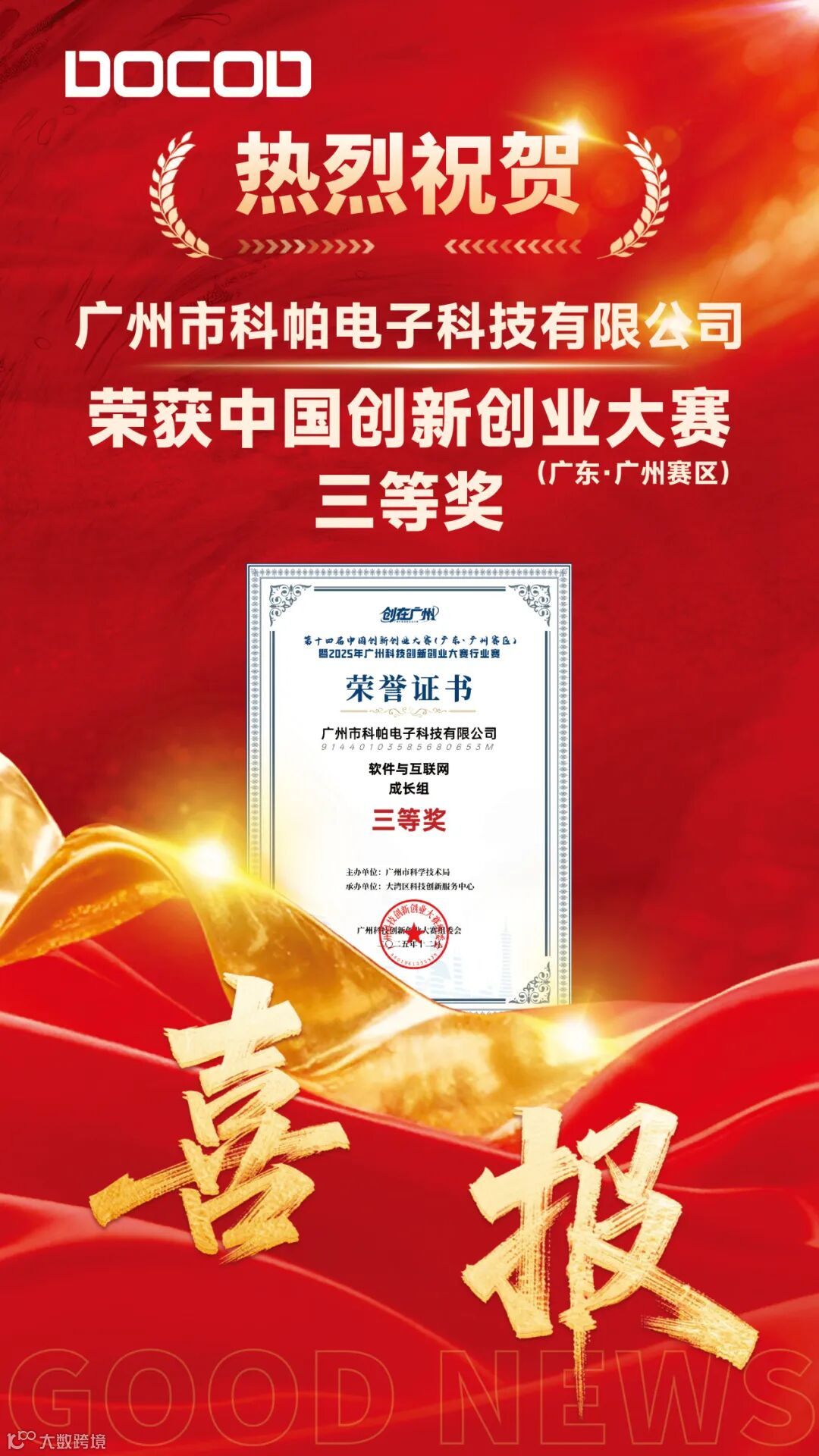 近日,第十四届中国创新创业大赛(广东·广州赛区)暨2025年广州科技创新创业大赛行业赛决赛结果正式公布。杜高精密集团子公司——广州市科帕电子科技有限公司凭借自主研发的“PD Matrix防窜防伪技术”,在竞争激烈的“软件与互联网成长组”中荣获三等奖,并取得该赛道第五名的优异成绩。