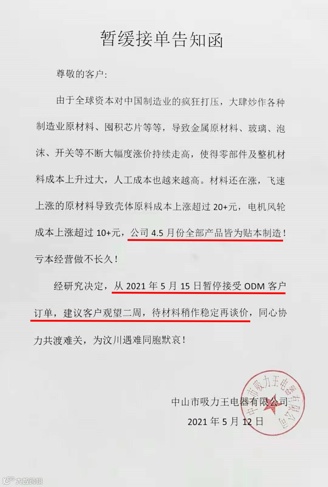 目前广东已有部分代工企业暂缓接受OEM订单,主要原因系原材料价格上涨,利润严重承压。大多数ODM客户对于价格特别敏感,对产品选择的主要考虑因素是价格,所以价格一直提不上去,调价幅度并不能覆盖原料成本上升幅度。