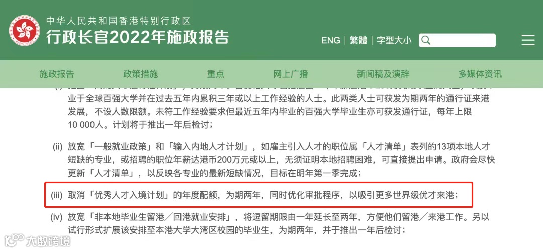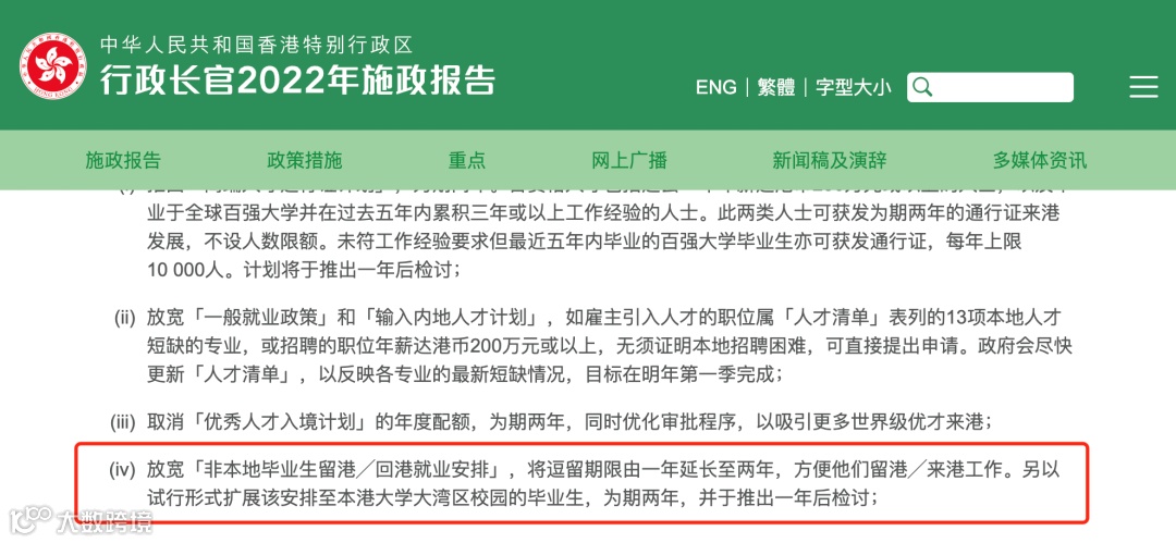 不设配额,只要在港修读了全日制经官方认可的本科或以上课程的非本地生,毕业一年内可无条件逗留香港;