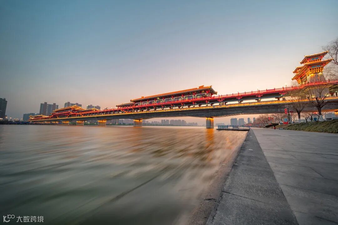 项目概况:古渡廊桥,位于陕西省咸阳市渭城区,横跨渭河,是全国首座秦建筑风格、双层人行景观廊桥。