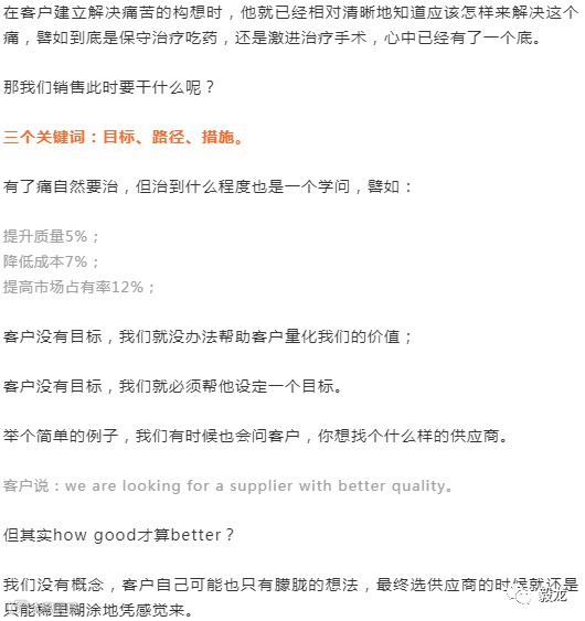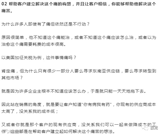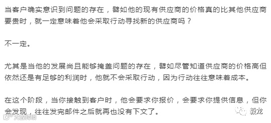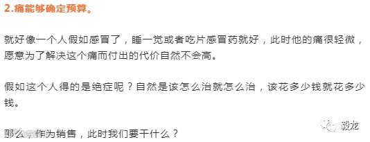 举个简单的例子:客户当前的供应商价格比市场平均水平高了5%,但就是因为这5%客户可能会丢失明年100万的订单,此时客户的痛就是100万。