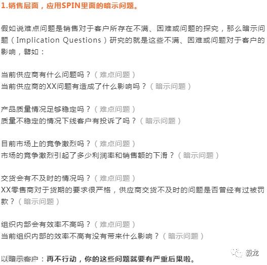 但这个时候问题来了,不管是用难点问题揭开客户的隐含需求,还是用暗示问题让对方感觉到痛,都免不了提问和沟通的环节。